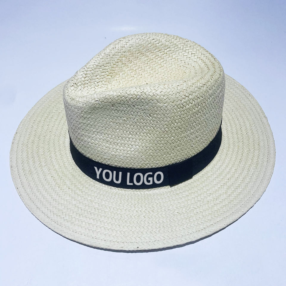 หมวกฟางขายส่ง หมวกฟางชายหาดกลางแจ้ง สกรีนโลโก้ตามสั่ง พร้อมริบบิ้นพิมพ์ลายตามสั่ง