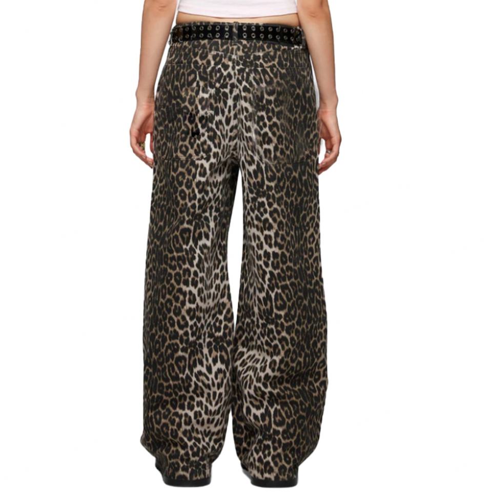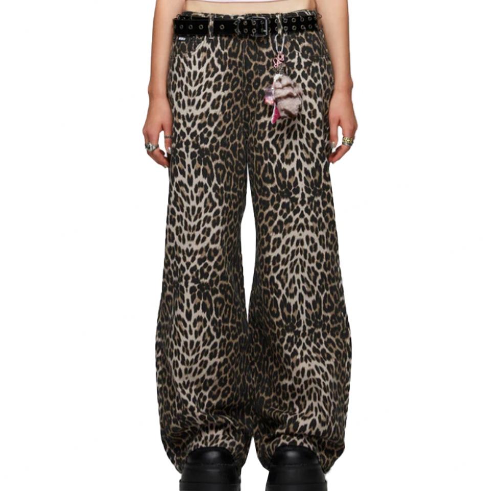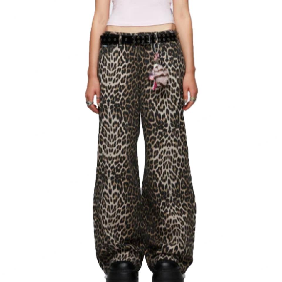 กางเกงยีนส์ทรงบอยเฟรนด์สไตล์สตรีทขายส่งสำหรับผู้หญิง เอวสูง ขากว้าง กางเกงลำลองลายเสือดาว กางเกงยีนส์ทรงหลวมสำหรับผู้หญิง