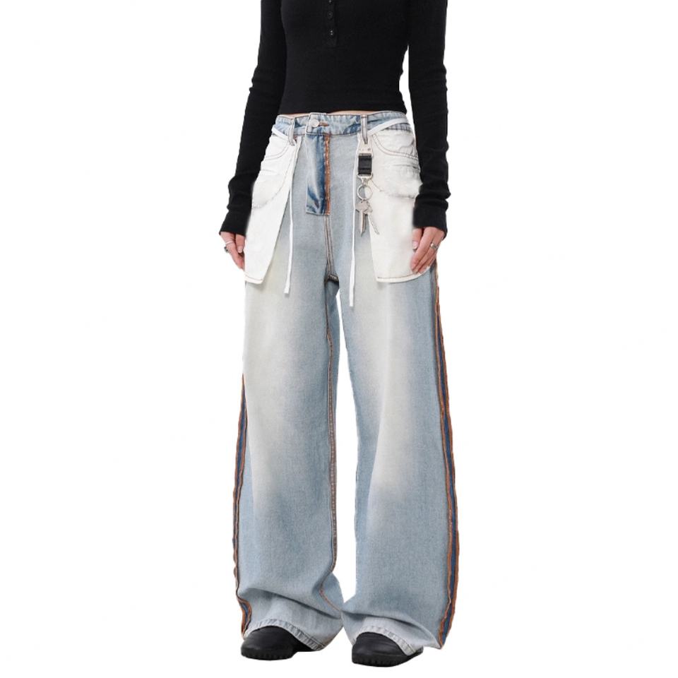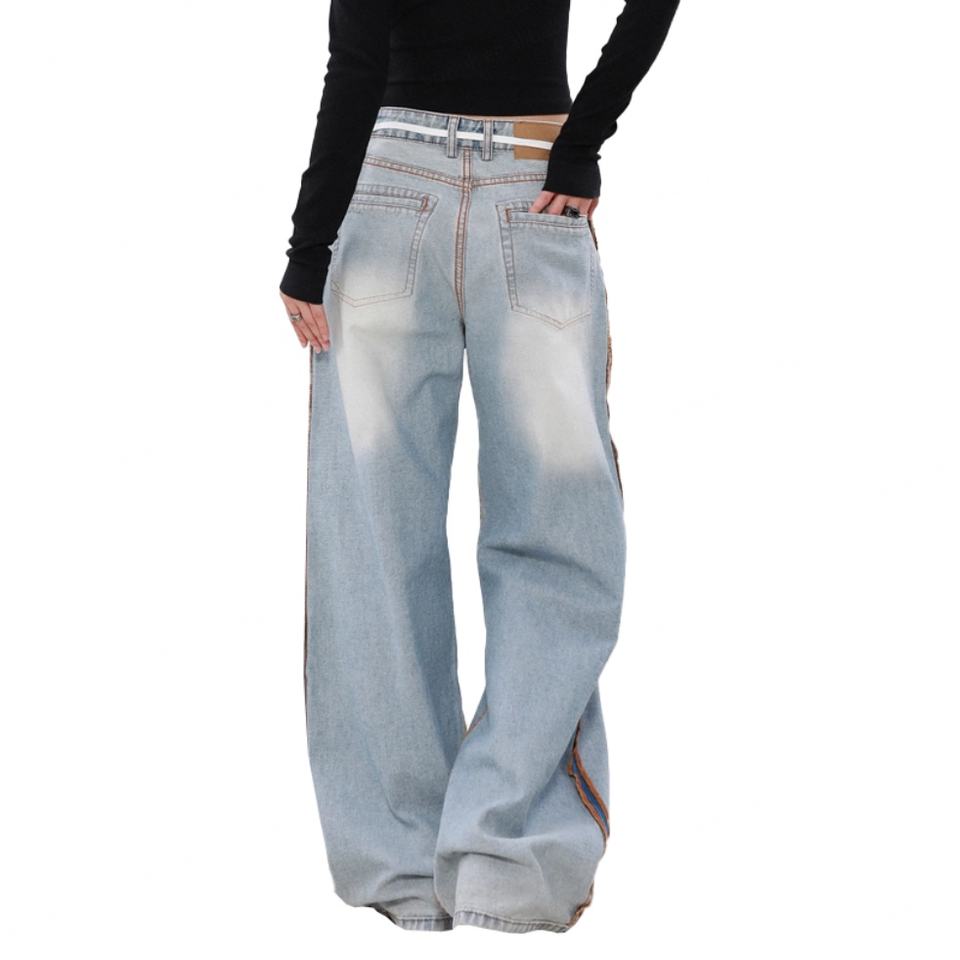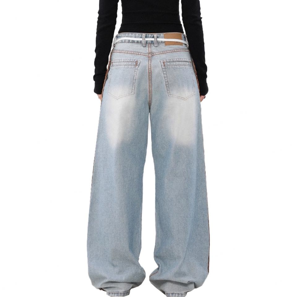 กางเกงยีนส์ขายส่งสไตล์สตรีทแวร์ ดีไซน์ย้อนยุค ทรงตรง ยูนิเซ็กส์ สีฟ้าอ่อน ซักแบบวินเทจ ผ้าฝ้าย 100% กางเกงยีนส์ทรงหลวมสำหรับผู้ชาย