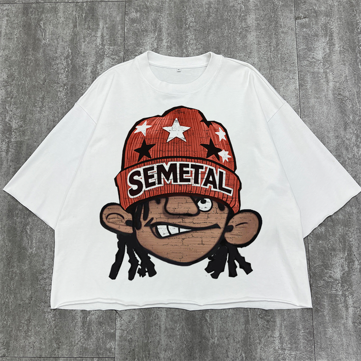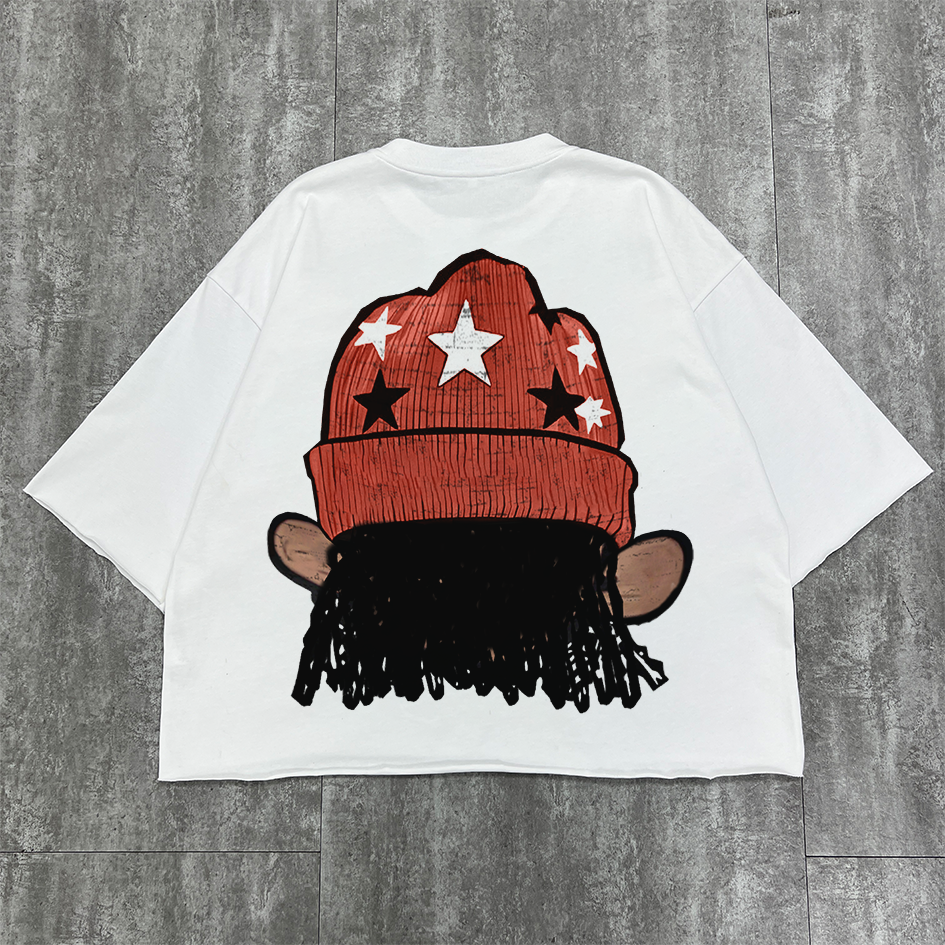 เสื้อยืดลำลองยูนิเซ็กส์สำหรับผู้ชายเสื้อยืดผ้าฝ้ายพิมพ์ลายกราฟิกโอเวอร์ไซส์เปิดไหล่ตก