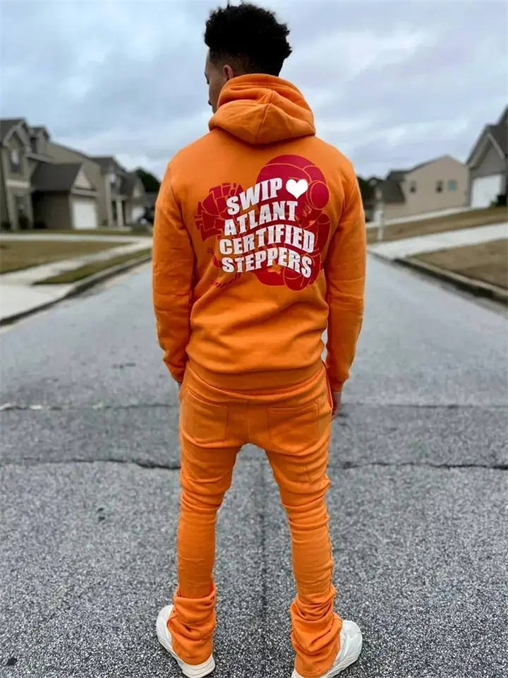 เซ็ตชุดวอร์มสำหรับผู้ชายชุดวอร์มย้อมสีล้วนมีฮู้ดปักผ้ากำมะหยี่แนวสตรีทสำหรับฤดูหนาว