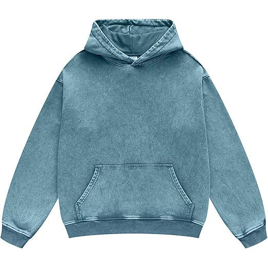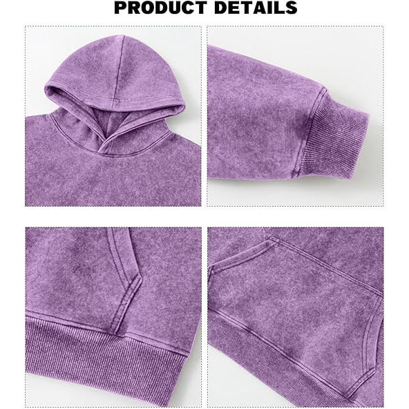 เสื้อฮู้ดดี้สตรีทแวร์วินเทจขายส่ง ผ้าฝ้ายฟอกสีซีดแบบแอซิดวอช ผ้าเฟรนช์เทอร์รี่ ทรงครอป บ็อกซี่ สำหรับผู้ชาย