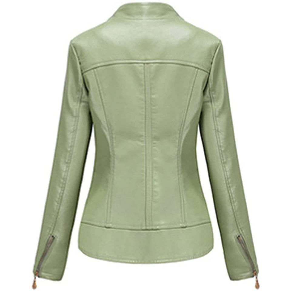 แจ็กเก็ตหนังแท้มีซิปสำหรับนักขี่จักรยานผู้หญิงแจ็คเก็ตหนังแท้ทรงสลิมฟิตสำหรับขี่มอเตอร์ไซค์ใหม่