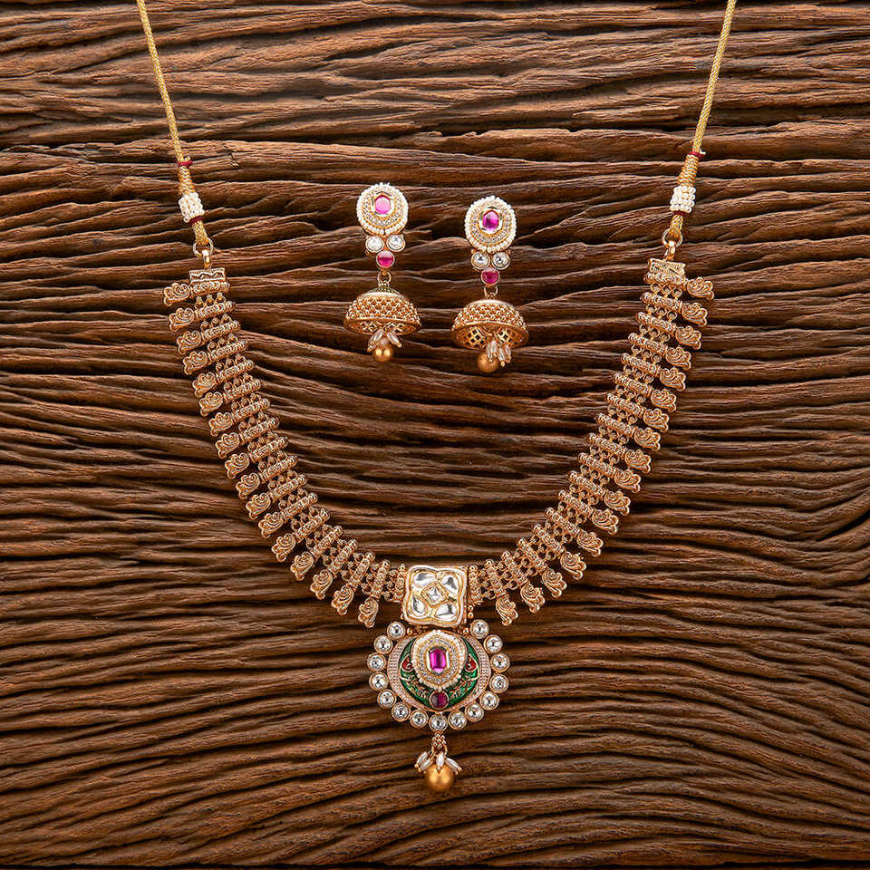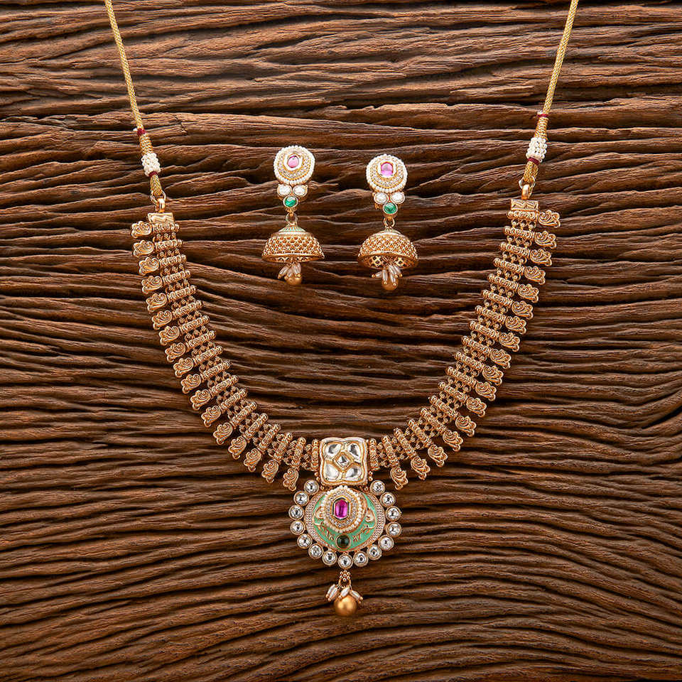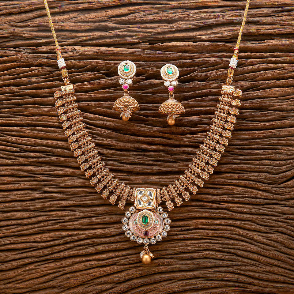 ชุดสร้อยคอ meenakari โบราณที่สวยงามพร้อมเครื่องประดับเลียนแบบเคลือบทอง