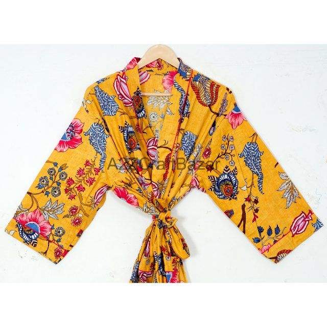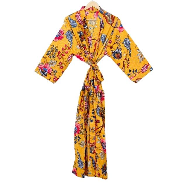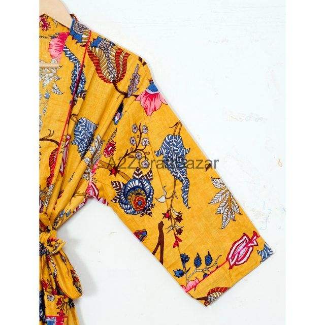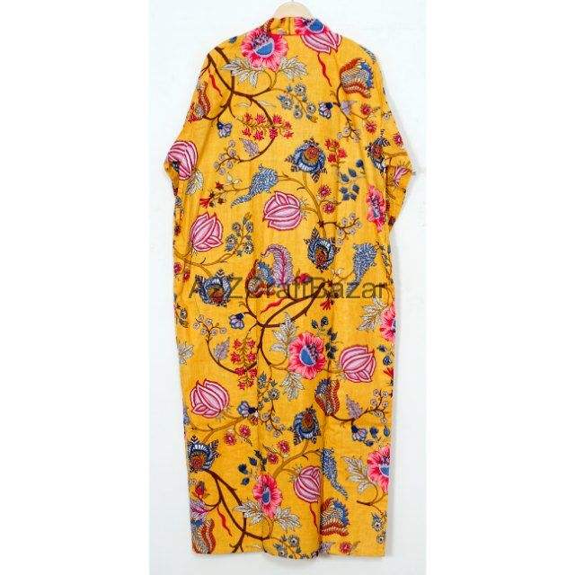 Wholesale Stylish Pure Cotton Maxi Gown Dress Women Floral Printed Kantha Style Kimono Premium Bathrobe Thermal Summer
