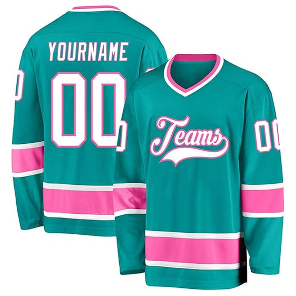 ชุดยูนิฟอร์มทีมแบบซับลิเมชั่นขายส่ง OEM เสื้อฮอกกี้น้ำแข็งแบบยูนิเซ็กซ์ พิมพ์ลายตามสั่ง ผ้าโพลีเอสเตอร์/คอตตอน แห้งเร็ว ระบายอากาศได้ดี เป็นมิตรกับสิ่งแวดล้อม