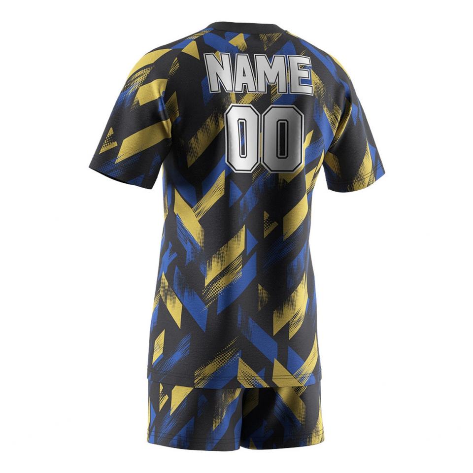 ชุดเสื้อยืดและกางเกงขาสั้นผู้ชายสำหรับกีฬา แบบซับลิเมชั่น คอวี สำหรับออกกำลังกาย เล่นกีฬาในยิม ผลิตจากโพลีเอสเตอร์ 100% มีกระเป๋า สำหรับทีมกีฬา ขายส่ง