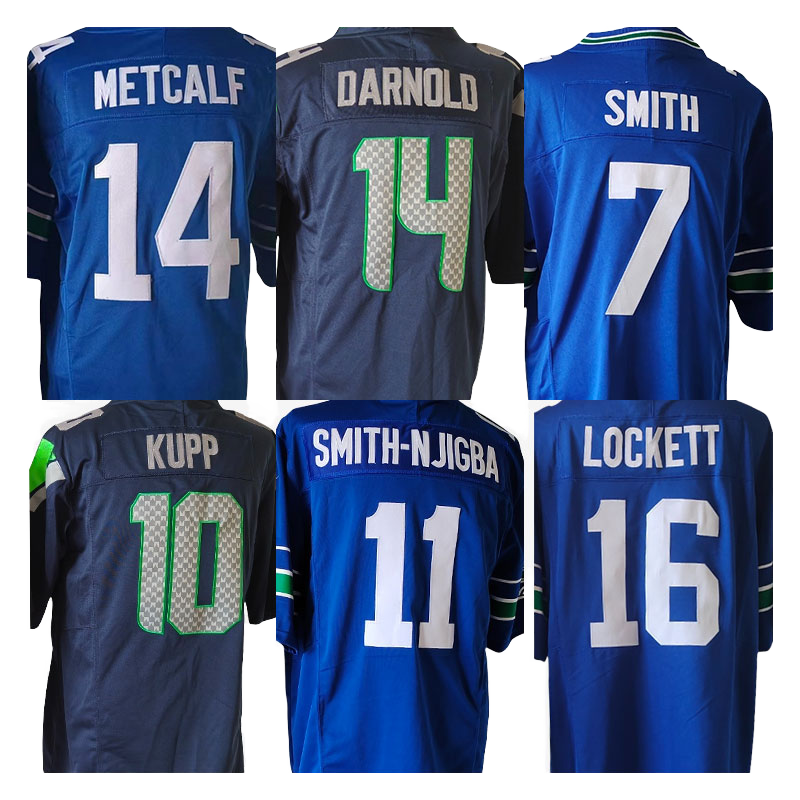 เสื้อฟุตบอลอเมริกันฤดูร้อนขายส่งสำหรับผู้ชายไซส์ใหญ่ ชุดยูนิฟอร์มขาสั้น # 16 ล็อคเก็ตต์ # 14 เม็ตคาล์ฟ # 7 สมิธ # ตราสัญลักษณ์วากเนอร์ 54