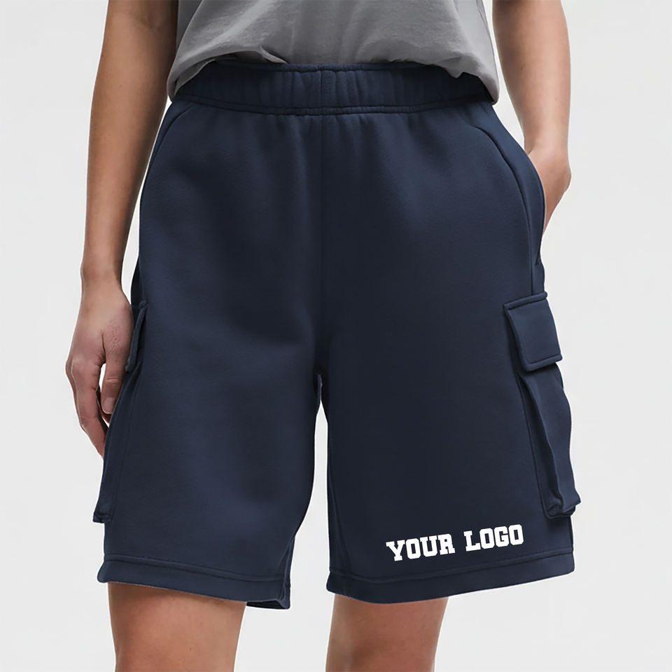 กางเกงขาสั้นลำลองสำหรับผู้หญิงขายส่ง ผ้าฝ้ายฟลีซ 100% ระบายอากาศ แห้งเร็ว พิมพ์ลายโลโก้ DTF ตามสั่ง สไตล์สตรีทแวร์