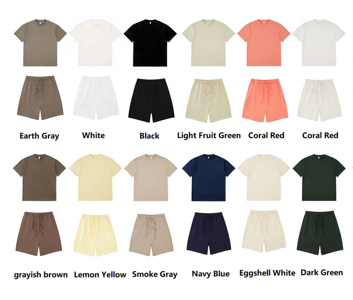 ชุดผ้าฝ้ายสองชิ้นสำหรับผู้ชายเสื้อและกางเกงขาสั้นสไตล์สตรีทแบบสั่งทำสำหรับฤดูร้อน