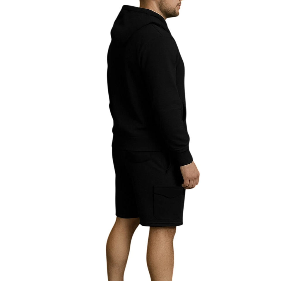 ชุดเซ็ตเสื้อฮู้ดแขนยาวและกางเกงขาสั้นสไตล์สตรีทแวร์สำหรับผู้ชายแบบซิป ผลิตตามสั่ง เป็นมิตรกับสิ่งแวดล้อม สำหรับฤดูใบไม้ร่วง ขายส่ง