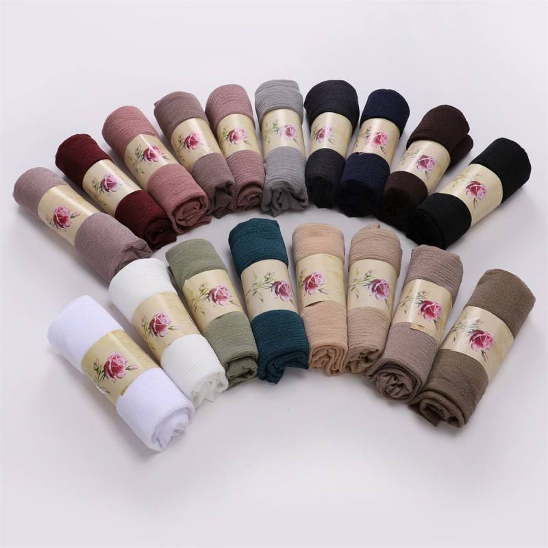 ผ้าโพกหัวลายชนเผ่าสีทึบผ้าโพกศีรษะแบบย่นฮิญาบผ้าโพกโพลีเอสเตอร์สำหรับสตรีมุสลิม