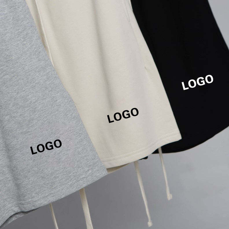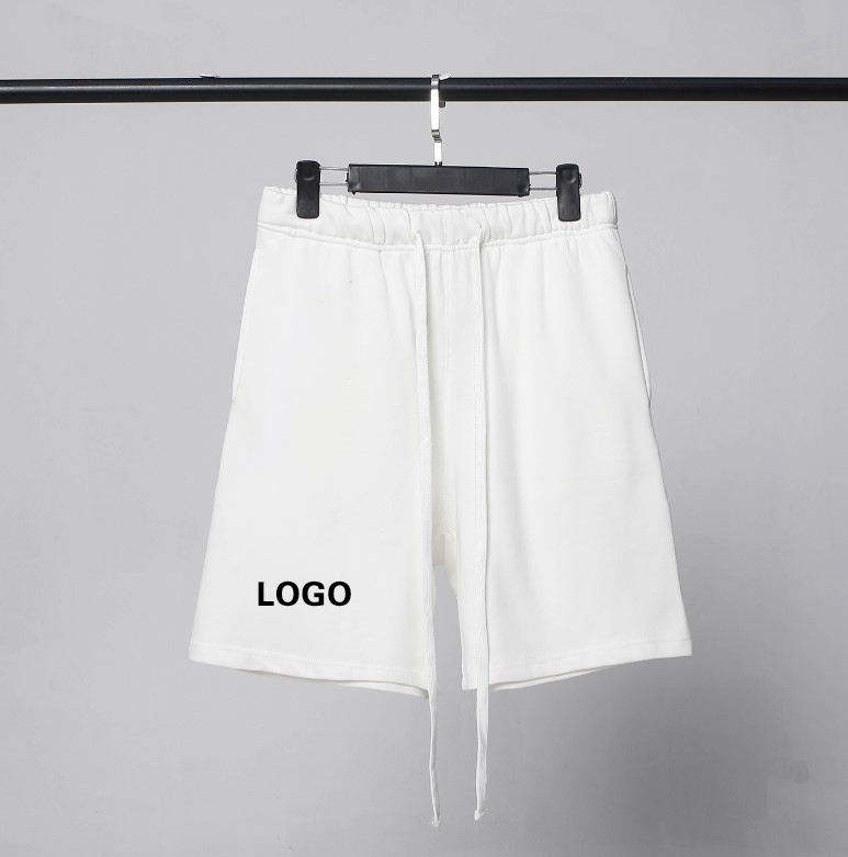 กางเกงขาสั้นลำลองผู้ชายสำหรับฤดูร้อน ขายส่ง ผ้าฝ้าย 100% สีดำเข้ม รับสกรีนโลโก้ เอวยางยืดถัก ความยาวระดับเข่า สีพื้น