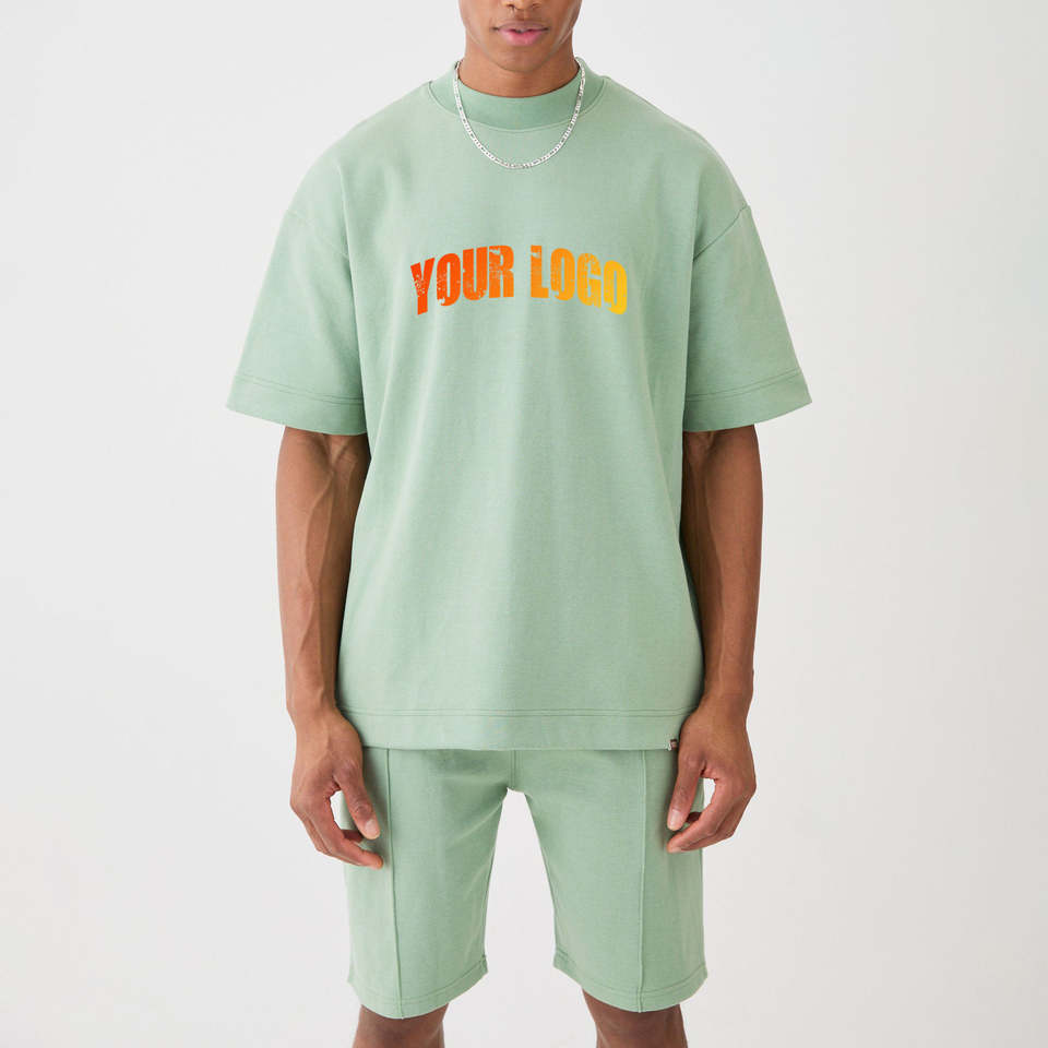 ชุดเสื้อและกางเกงขาสั้นผู้ชายสำหรับฤดูร้อน ขายส่ง รับทำโลโก้ ผ้าฝ้าย 100% ทรงโอเวอร์ไซส์ 2 ชิ้น แห้งเร็ว เป็นมิตรกับสิ่งแวดล้อม ระบายอากาศได้ดี