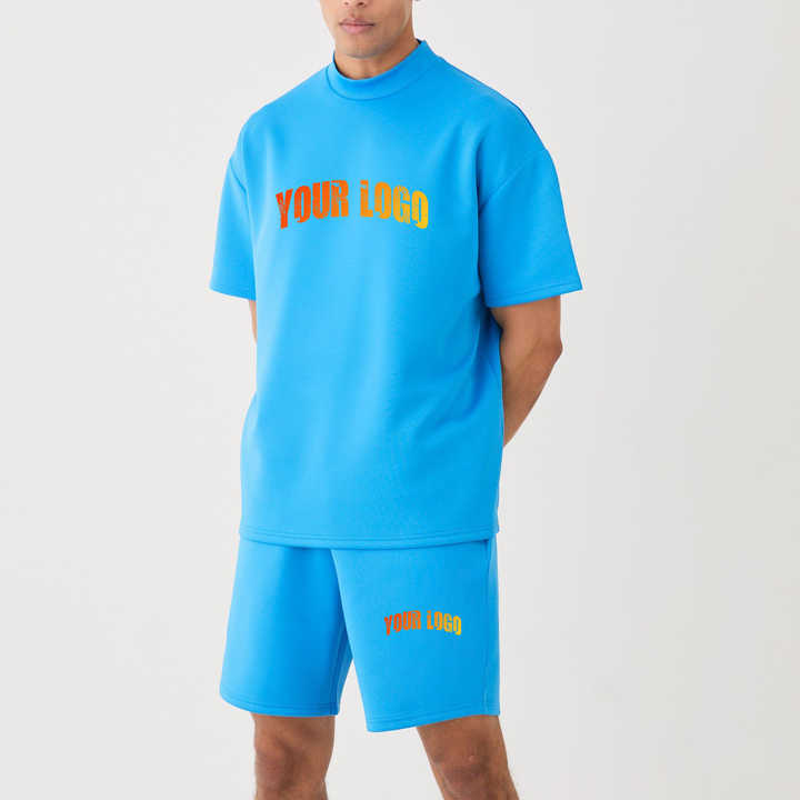 ชุดเซ็ตฤดูร้อนผู้ชายขายส่ง รับทำโลโก้ เสื้อโอเวอร์ไซส์ผ้าฝ้าย 100% และกางเกงขาสั้น ชุดเซ็ต 2 ชิ้น ชุดฤดูร้อนแบบกำหนดเองได้