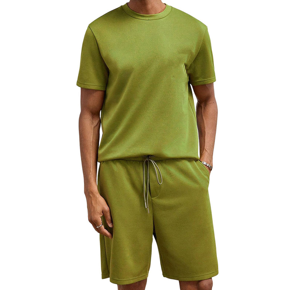 ชุดเซ็ต2ชิ้นกางเกงขาสั้นผู้ชายแบบลำลองสำหรับฤดูร้อนเสื้อยืดแขนยาวชุดวอร์มสีล้วนระบายอากาศ