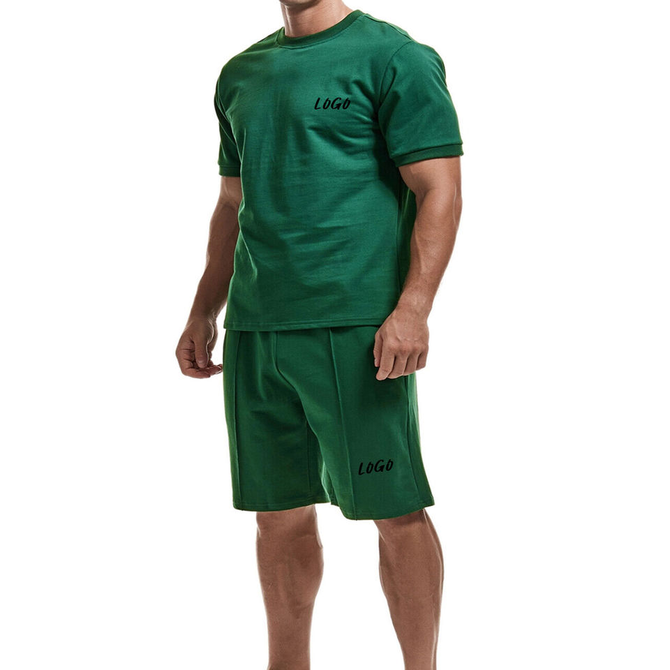ชุดกางเกงขาสั้นลำลองสำหรับผู้ชายสำหรับฤดูร้อนเสื้อยืดแขนสั้นกางเกงขาสั้นผ้า300gsm ฟิตเนสสีทึบ