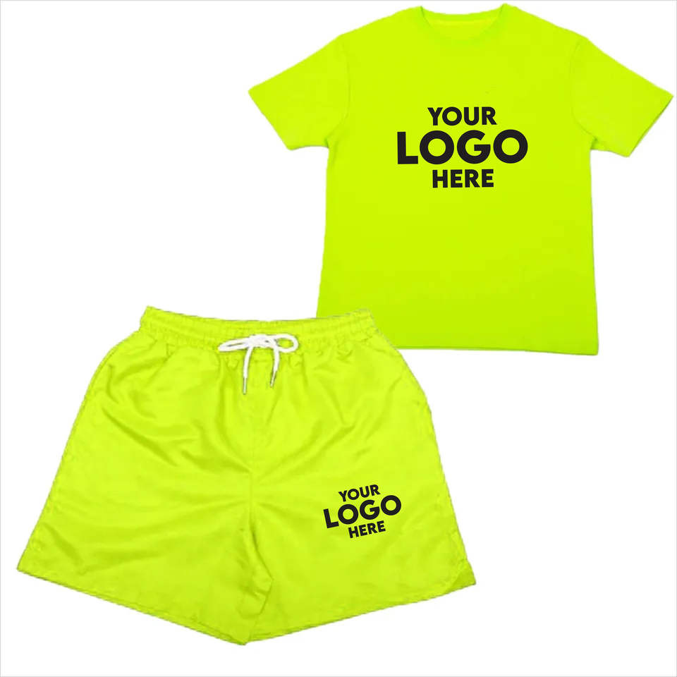 ชุดเซ็ตเสื้อยืดแขนสั้นและกางเกงขาสั้นลำลองระบายอากาศสำหรับผู้ชายรุ่นใหม่ขายส่งสำหรับฤดูร้อน ลายพิมพ์เรียบง่าย ชุด 2 ชิ้น