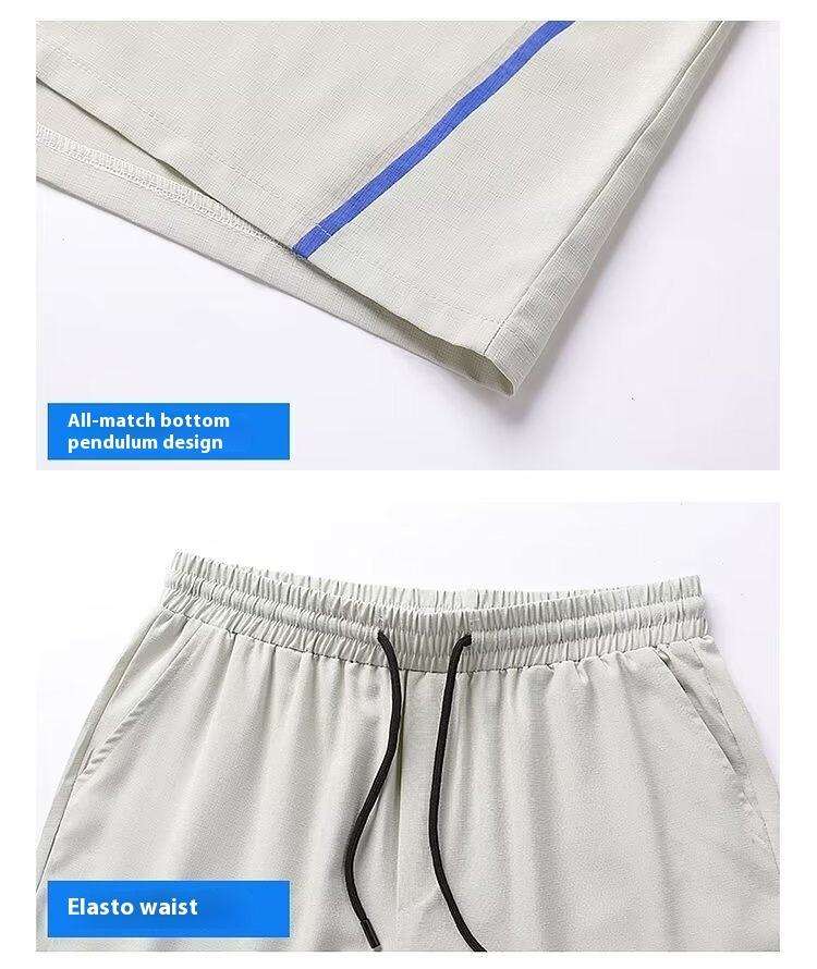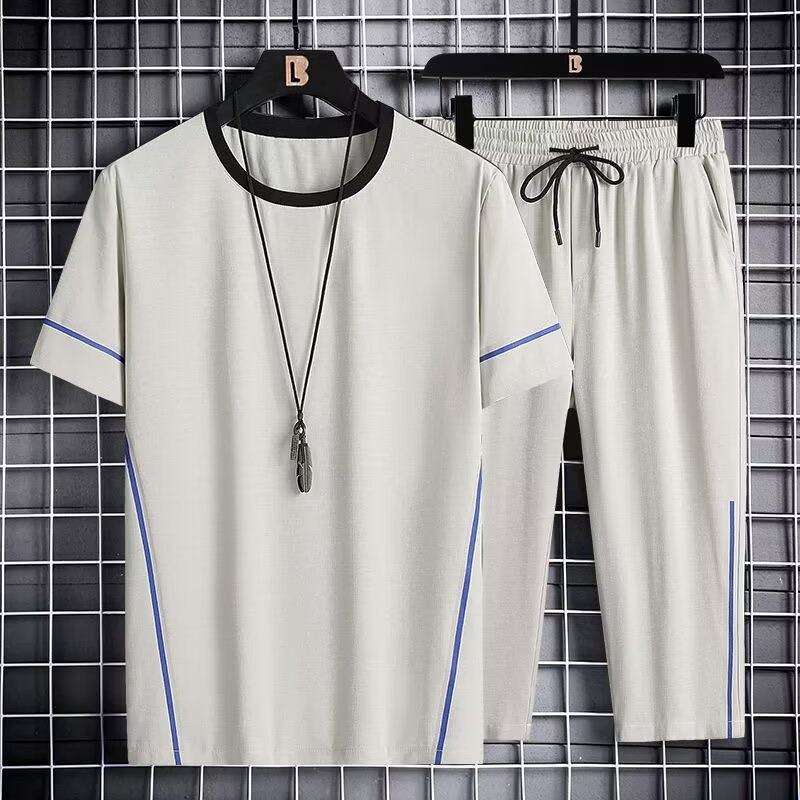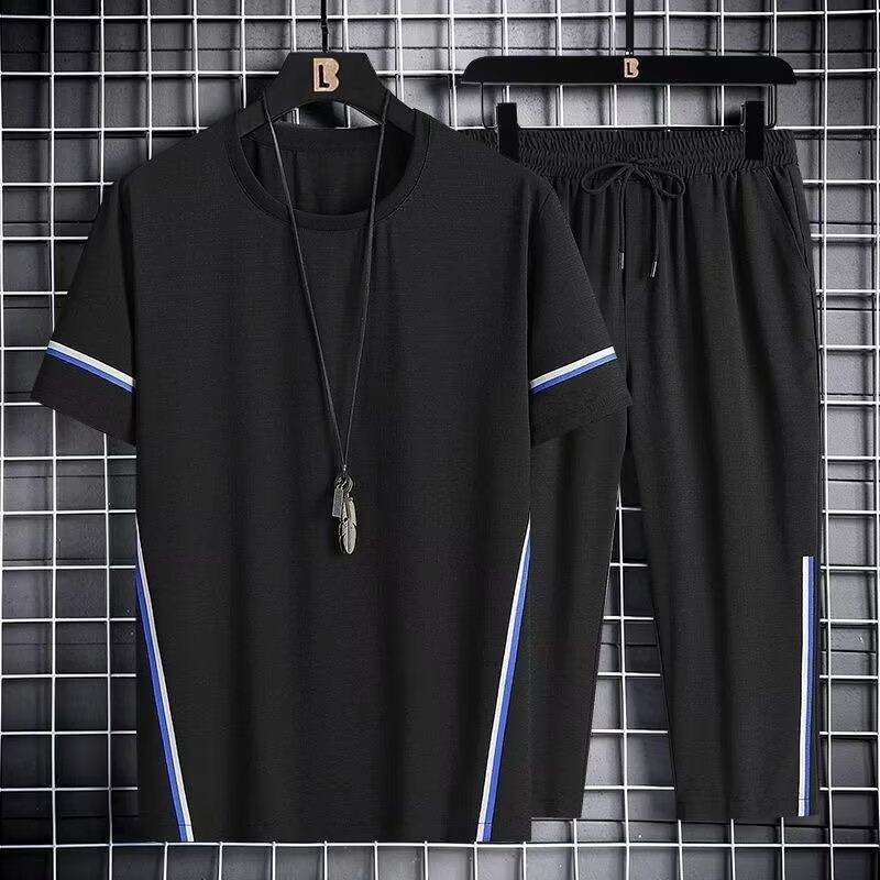 ชุดเสื้อผ้ากีฬาลำลองสไตล์เกาหลีสำหรับผู้ชายไซส์ใหญ่ ฤดูร้อน ขายส่ง เสื้อยืดแขนสั้นและกางเกงขาสั้น