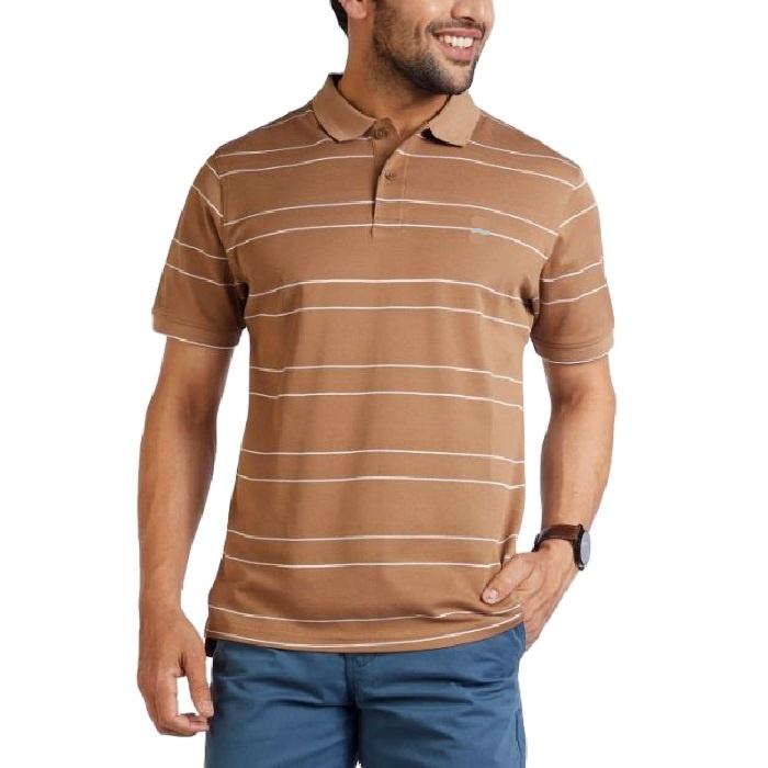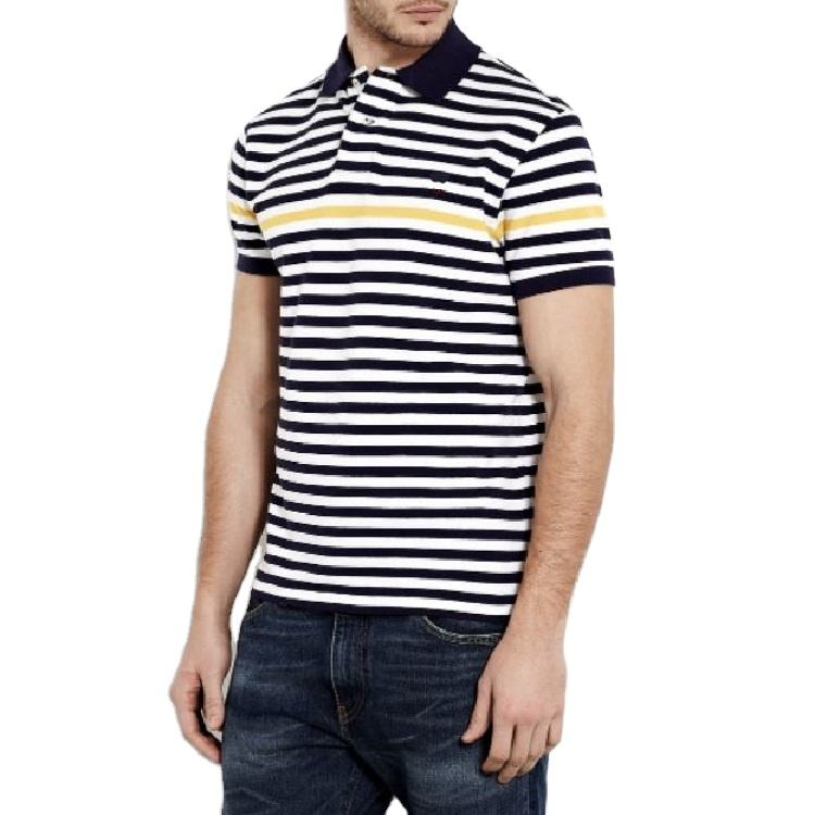 เสื้อโปโลผู้ชายลายทางทำจากผ้าคอตตอนเสื้อโปโลแขนสั้น100%