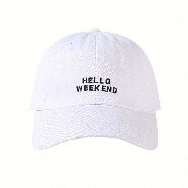 หมวกแก๊ปปักลาย Hello Weekend สีเบจ สำหรับฤดูร้อน ขายส่ง หมวกเบสบอลแบบ unisex สั่งทำได้ สำหรับผู้หญิง