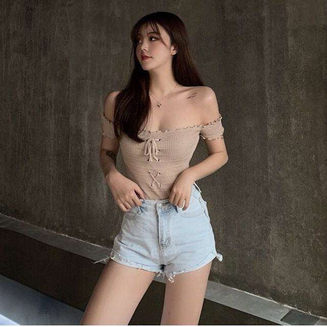 เสื้อเปิดไหล่ฤดูร้อนขายส่ง เสื้อถักแขนสั้นผู้หญิง สไตล์หรูหรา เสื้อเปิดไหล่ข้างเดียวสำหรับผู้หญิง