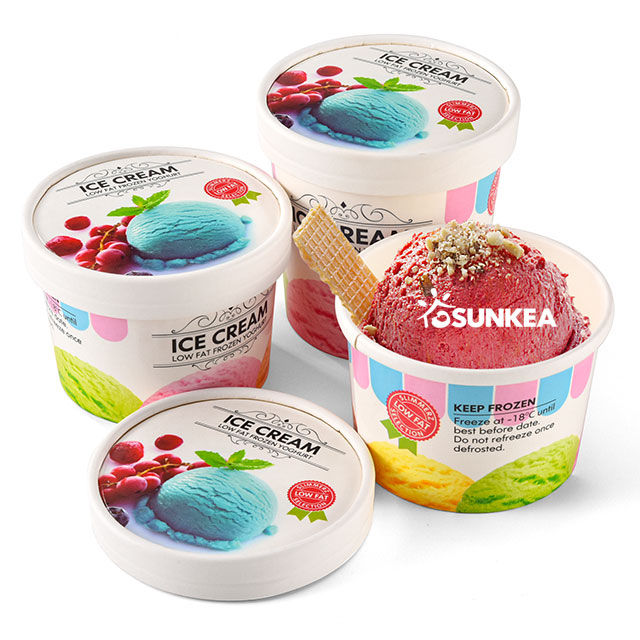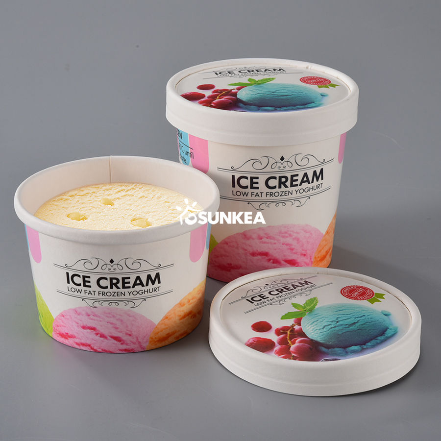 ถ้วยไอศกรีมหุ้มฉนวนสองชั้นพร้อมช้อนพิมพ์ลายแบบกำหนดเองเป็นมิตรต่อสิ่งแวดล้อม