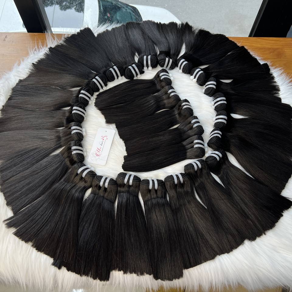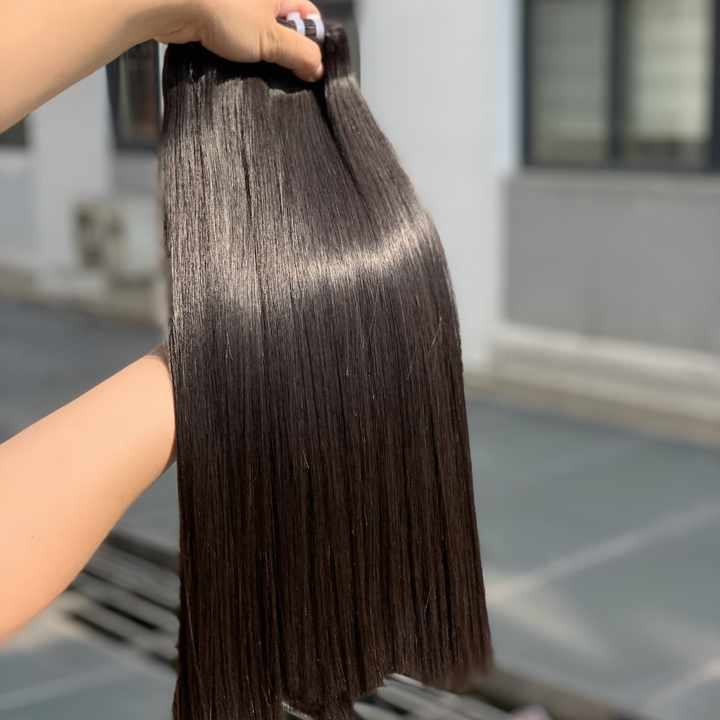 ผมเวอร์จินแท้เวียดนามแบบเวอร์จินเรมี่ เกรดซุปเปอร์ดับเบิ้ลดรอว์น ดับเบิ้ลเวฟท์ บอนสเตรท คิวติเคิลเรียงเส้นเดียวกัน แบบมัดเป็นช่อจากผู้บริจาคคนเดียว ขายส่ง