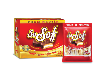 ขายส่งพายเคลือบช็อกโกแลตเนื้อนุ่มพิเศษ ผลิตภัณฑ์เบเกอรี่แบบ OEM ODM บรรจุภัณฑ์แบบขายส่ง พายเนื้อนุ่ม 2 ชั้น บรรจุ 24 ถุง/กล่อง เค้กหวาน