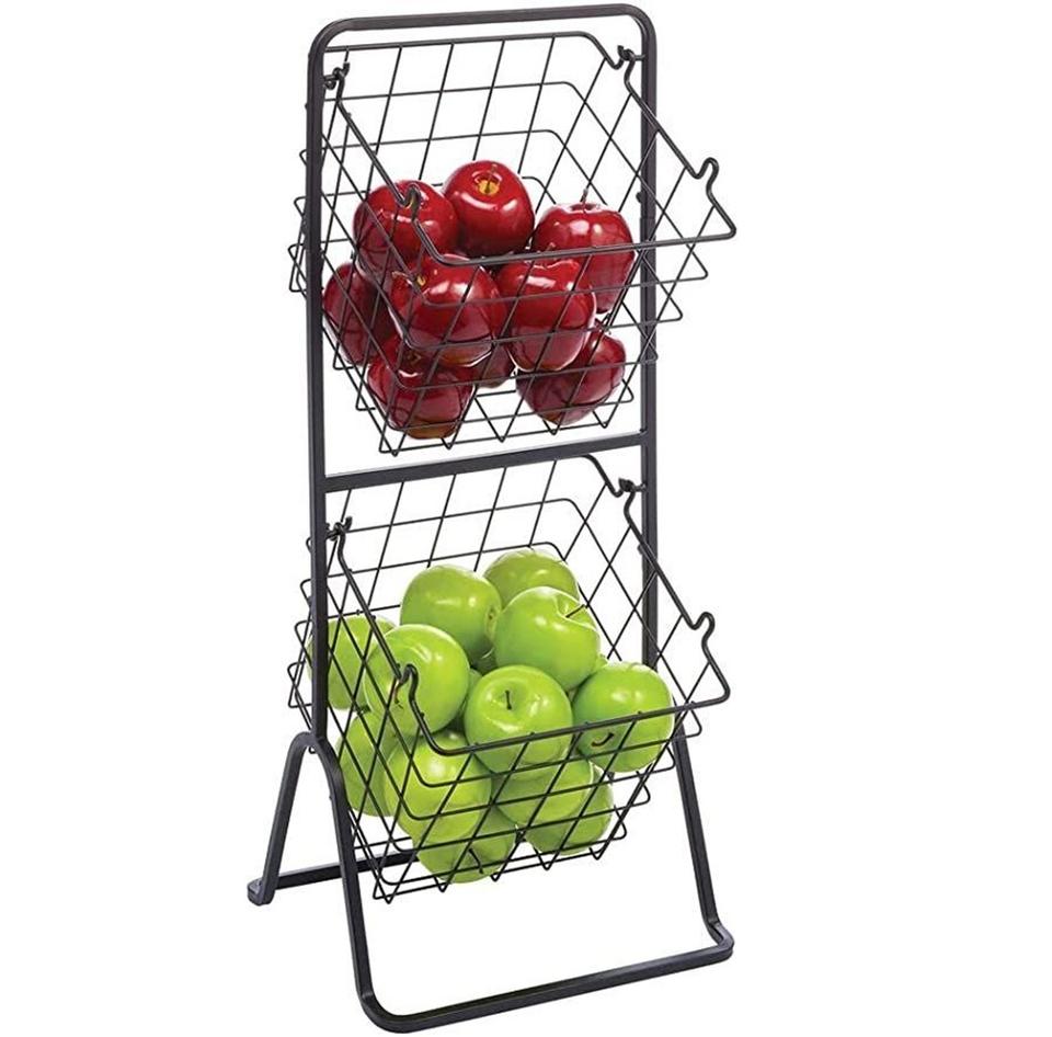 ผู้จัดจำหน่ายขายส่ง ตะกร้าลวด 2 ชั้น คุณภาพสูงสุด รูปทรงกลม ตะกร้าเก็บผักและผลไม้