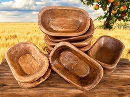 ชามแป้งไม้ทรงสี่เหลี่ยมผืนผ้าสไตล์ชนบทชามไม้ผลไม้โรงแรมแบบกำหนดเองขายส่ง