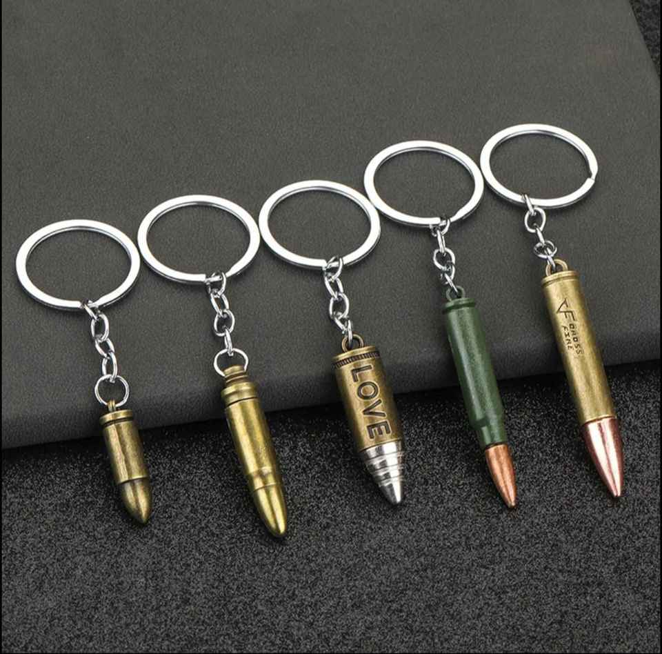 พวงกุญแจหัวกระสุนทรงสี่เหลี่ยมทำด้วยมือสไตล์วินเทจทำจากทองเหลืองแบบคลาสสิกของตกแต่งวันชาติหลากสี (สีทอง)