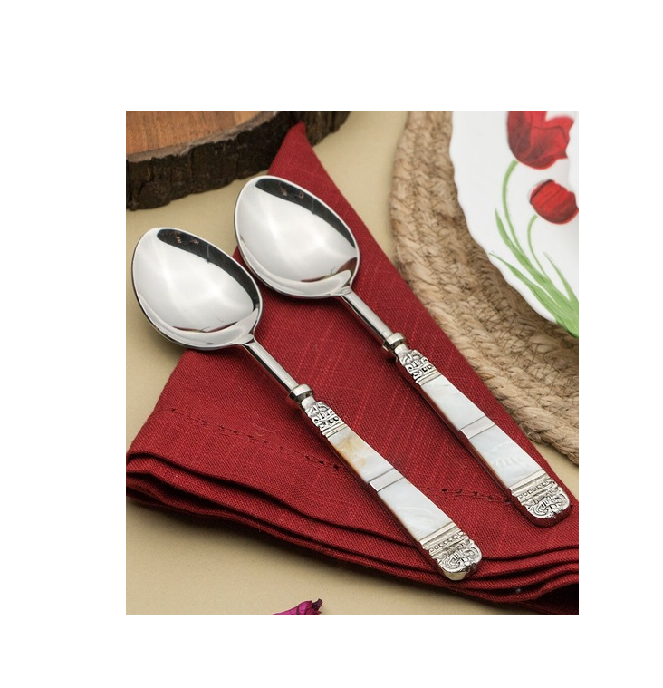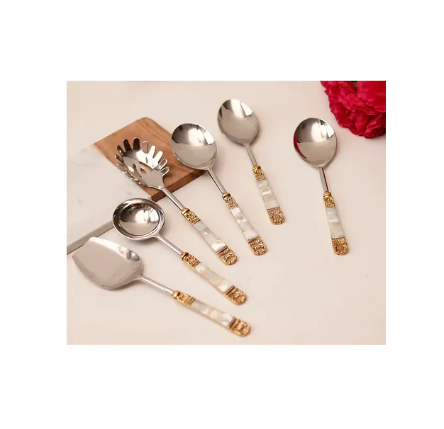 เครื่องใช้บนโต๊ะอาหารด้ามมุกเครื่องใช้บนโต๊ะอาหารไม้ถูพื้นสแตนเลสช้อนและส้อม