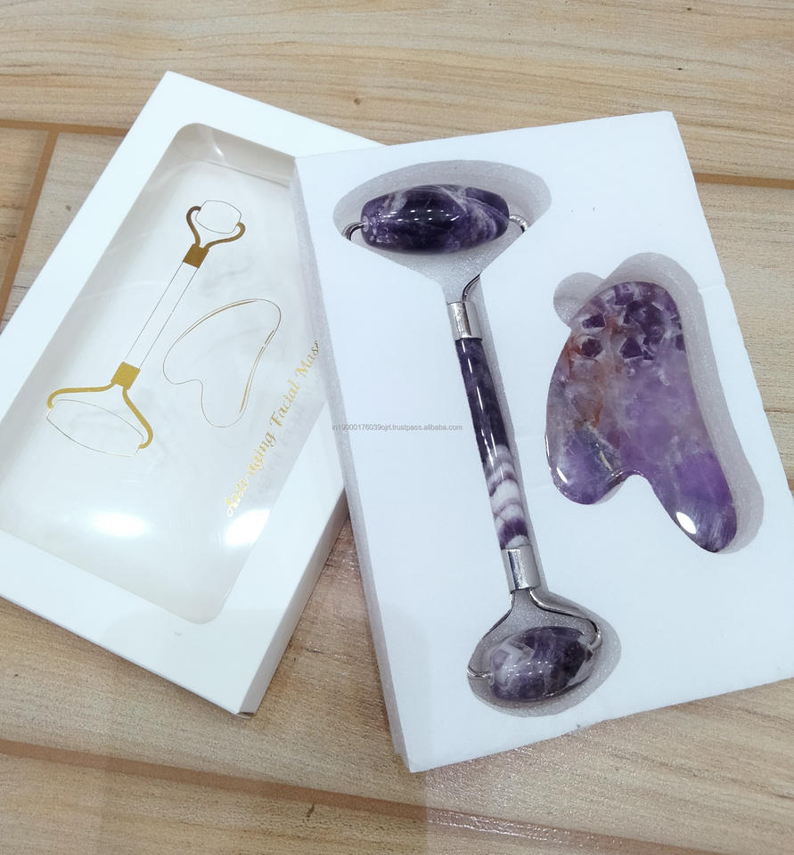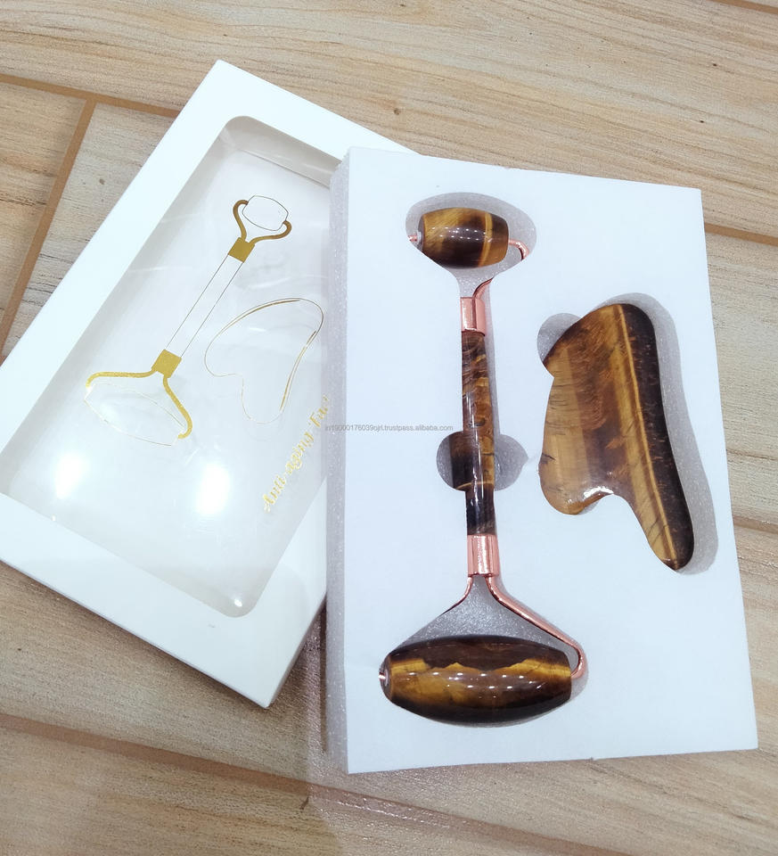 ชุดลูกกลิ้งและกัวซาพร้อมกล่องหินอาเกตธรรมชาติผลิตภัณฑ์นวดผิวอะเวนจูรีนสีเขียวบำบัด