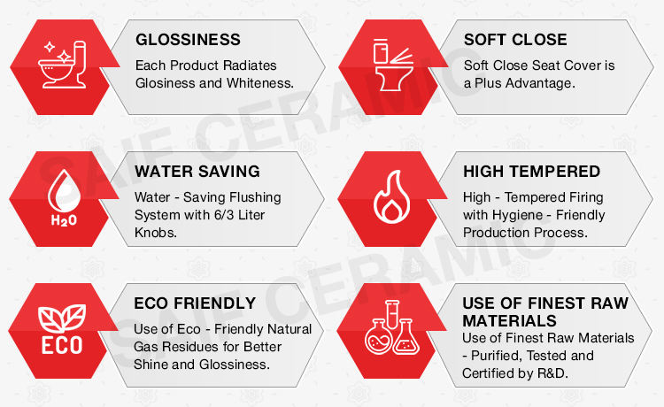 ข้อดี:เคลือบใหม่, ประหยัดน้ำ, ระบบปิดนุ่มนวล, ระบบถอดประกอบ
