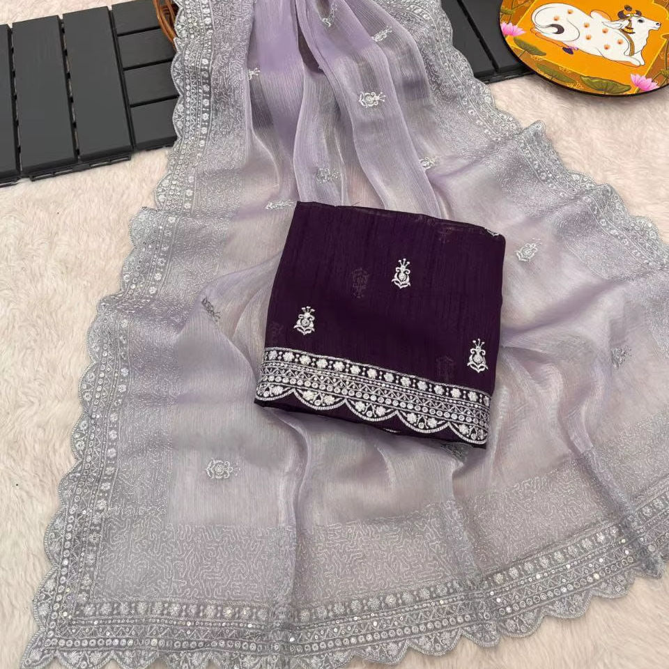 Wholesale Supplier of Lavender Dreams Ready Wear Sarees with Pearl Embellishments Handcrafted Detailing for Parties Made India