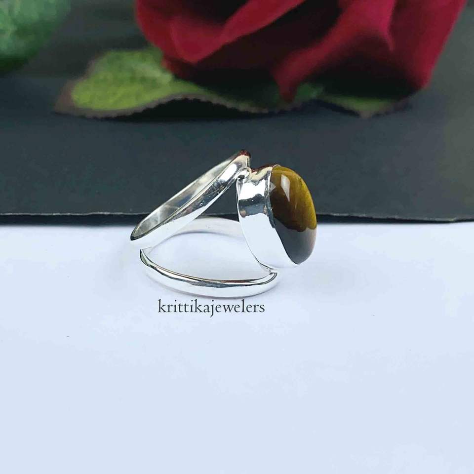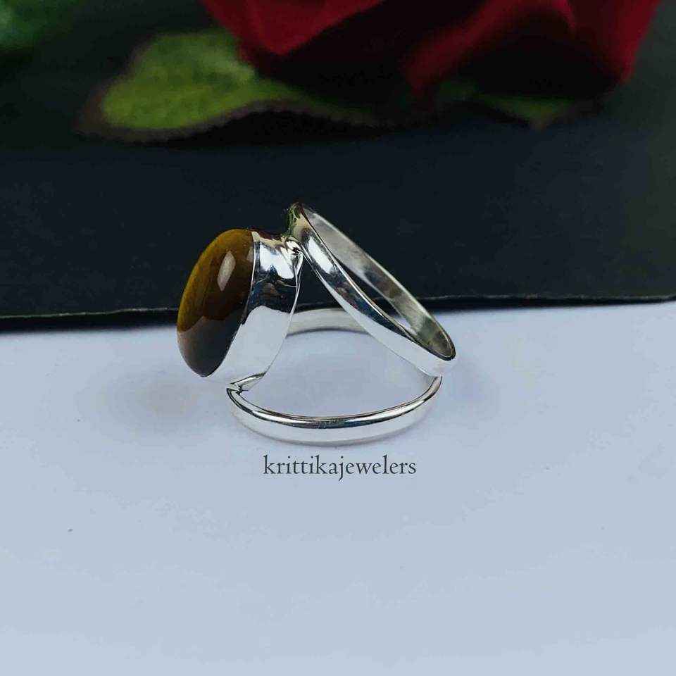 แหวนค็อกเทลพลอยไทเกอร์อายทรงรีคลาสสิกจากผู้ค้าส่ง ตัวเรือนเงินแท้ 925 ประดับแบบ Bezel Setting สำหรับงานปาร์ตี้และงานแต่งงาน
