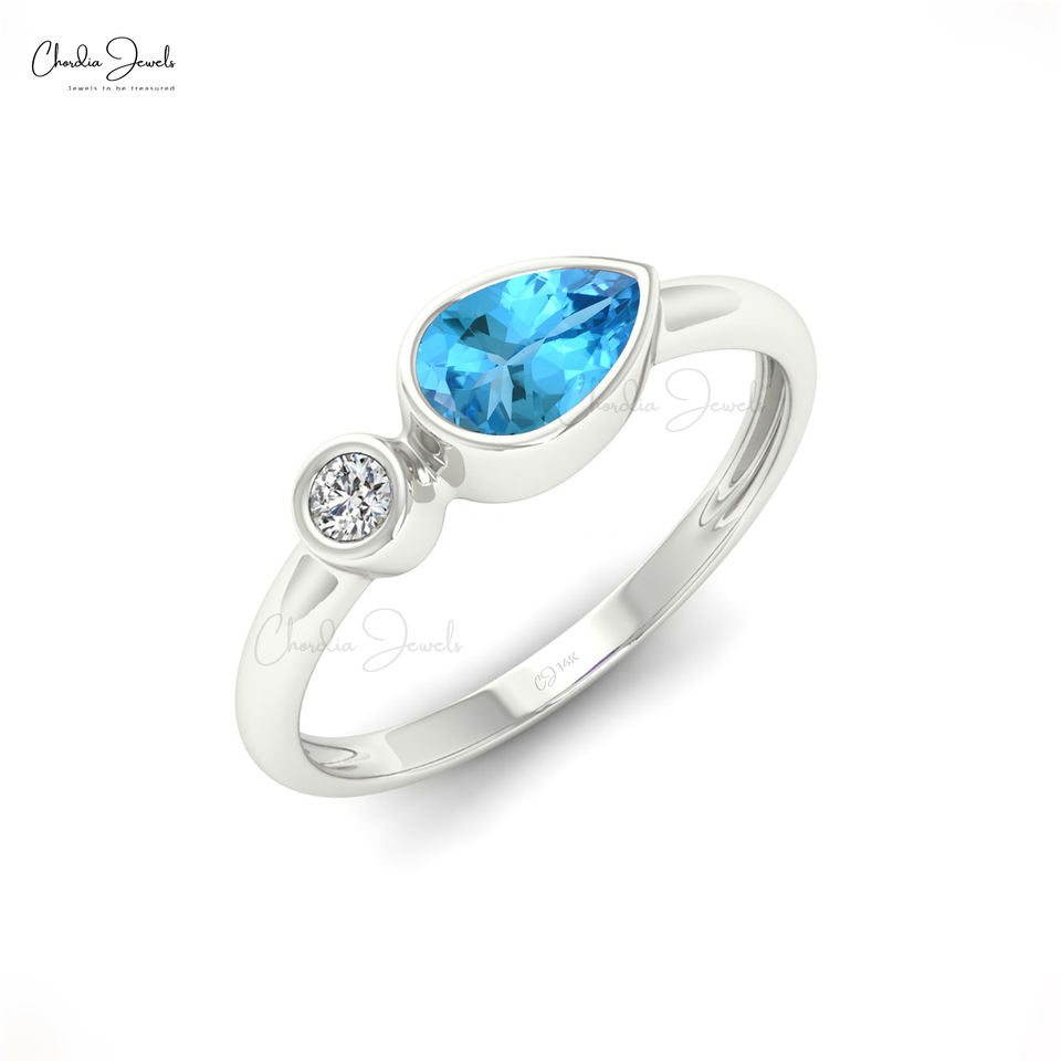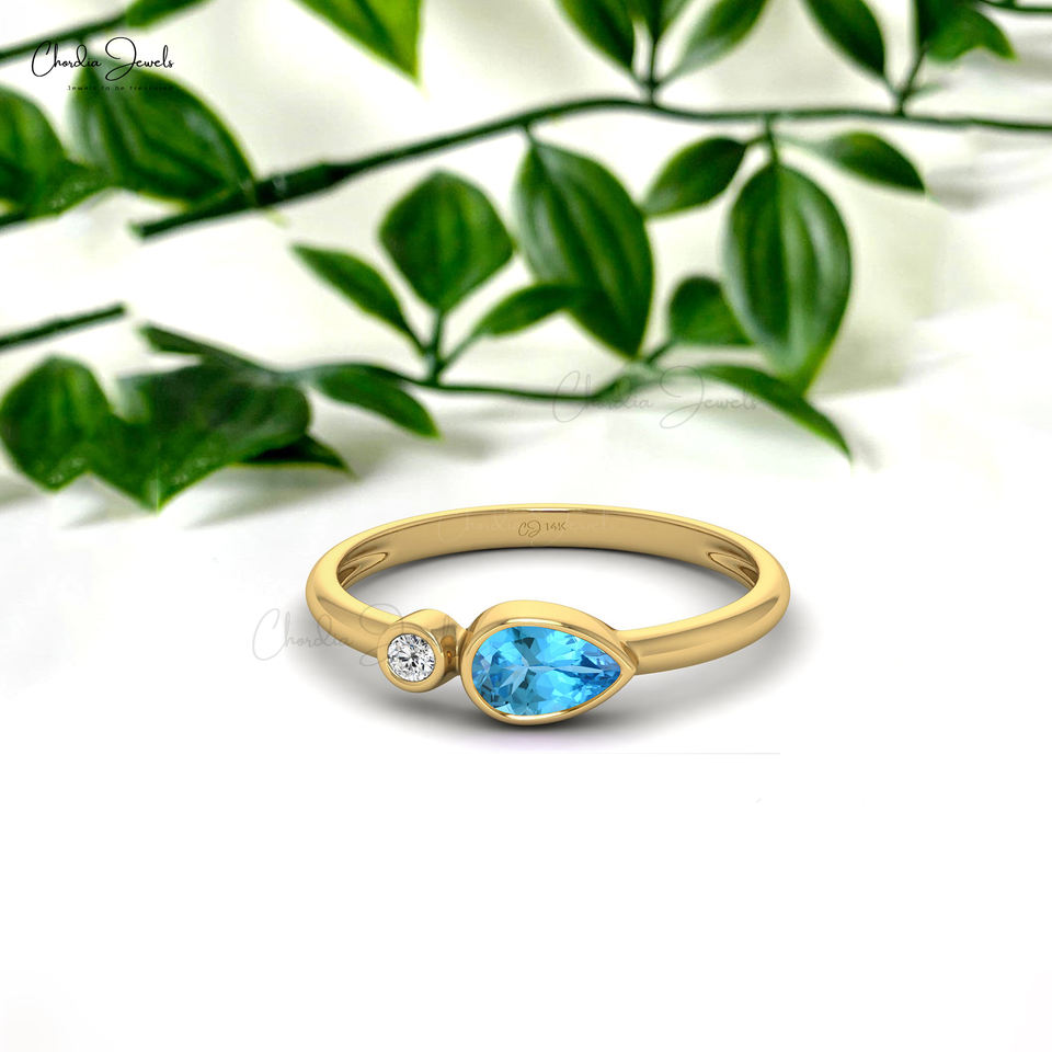ผู้ค้าส่งแหวนแต่งงานและหมั้นเพชรแท้ 14k ทองคำบริสุทธิ์ ประดับด้วยพลอยบลูโทแพซทรงลูกแพร์ 0.5 กะรัต และเพชร G-H สองเม็ด