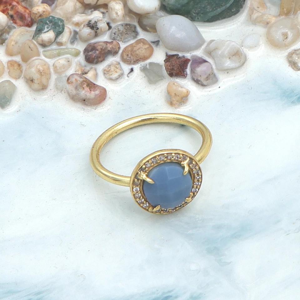 แหวนกลมแบบปรับได้สีทองโอปอลสีฟ้าสำหรับงานเลี้ยงในโอกาสพิเศษและชุดประจำวัน