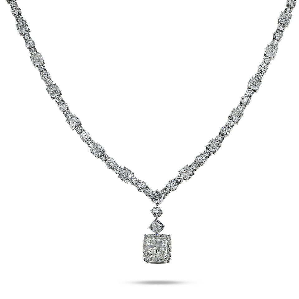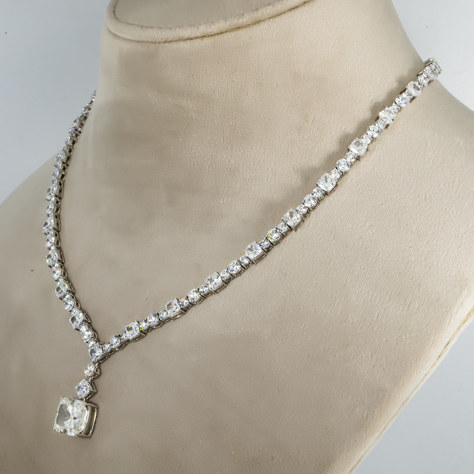 สร้อยคอเพชรทรงคุชชั่นทองคำขาว 18K คุณภาพเยี่ยม ขายส่ง ราคาดี เหมาะเป็นของขวัญสุดหรูสำหรับเธอ