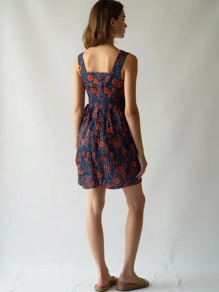 ชุดเดรสผ้าฝ้ายทอมือลายดอกไม้ขนาดมินิสำหรับงานปาร์ตี้ในสวน ปิกนิก ชายหาด หรือใส่เที่ยวสบายๆ จำหน่ายราคาส่งในราคาที่เข้าถึงได้
