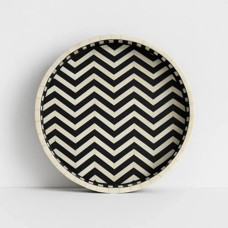 ถาดฝังกระดูกทรงกลมทำด้วยมือปรับแต่งได้สำหรับตกแต่งโต๊ะกาแฟและขนมใช้ทั่วโลกจากอินเดีย