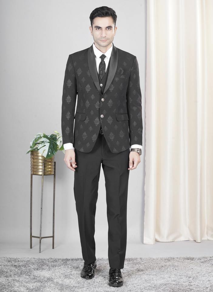 ชุดสูทผู้ชายสีดำทันสมัยแบบ 5 ชิ้น สำหรับงานแต่งงานและงานประชุมทางธุรกิจ จำหน่ายราคาส่งจำนวนมากจากอินเดีย