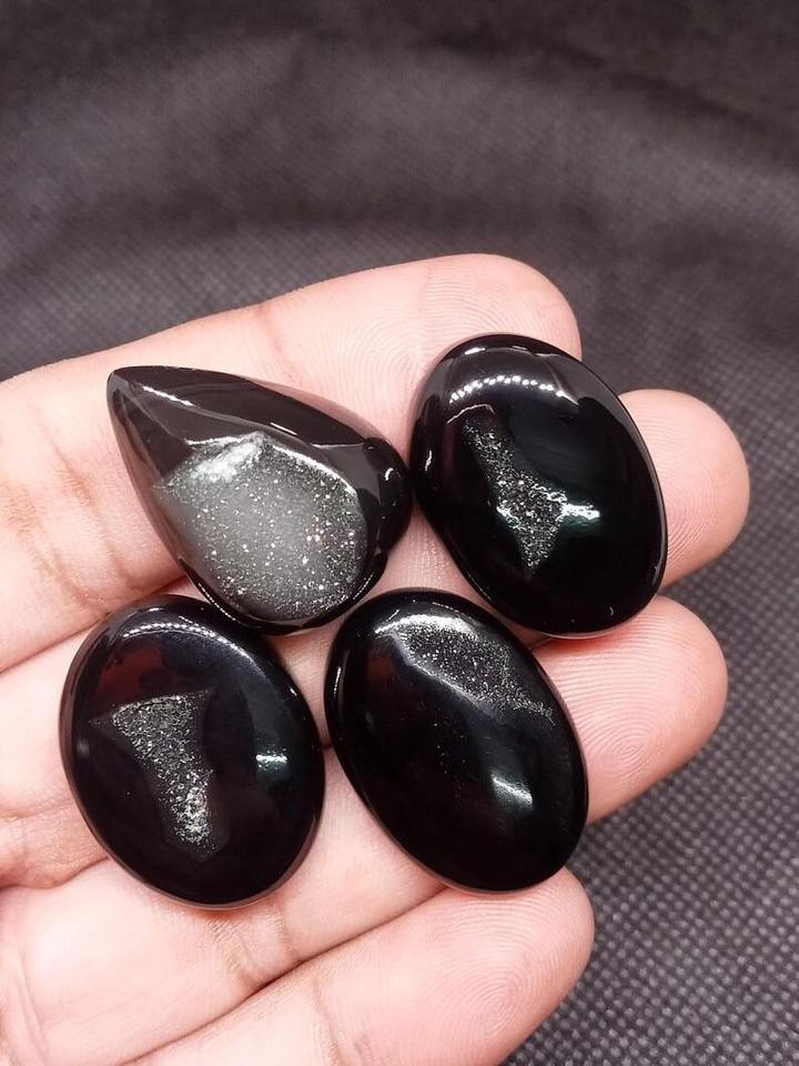 หินดรูซี่อัญมณีทรงหลังเบี้ยสีดำธรรมชาติสำหรับห้อยหรือแหวนใช้จากอินเดีย