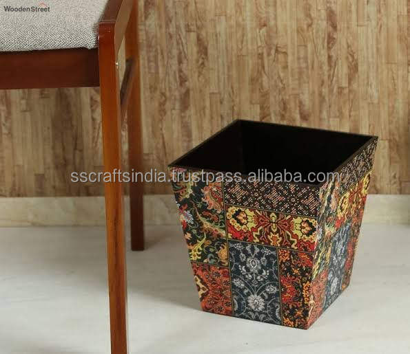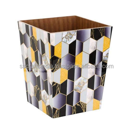 ถังขยะพิมพ์ลายเคลือบพร้อมพื้นผิวไม้สำหรับมุมครัวห้องนอนและสำนักงาน