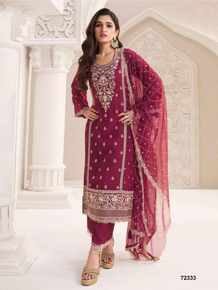 ชุดสูทผ้าไหมปากีสถานพร้อมชุดเย็บปักลายสำหรับงานเทศกาลจากผู้จำหน่ายในอินเดีย
