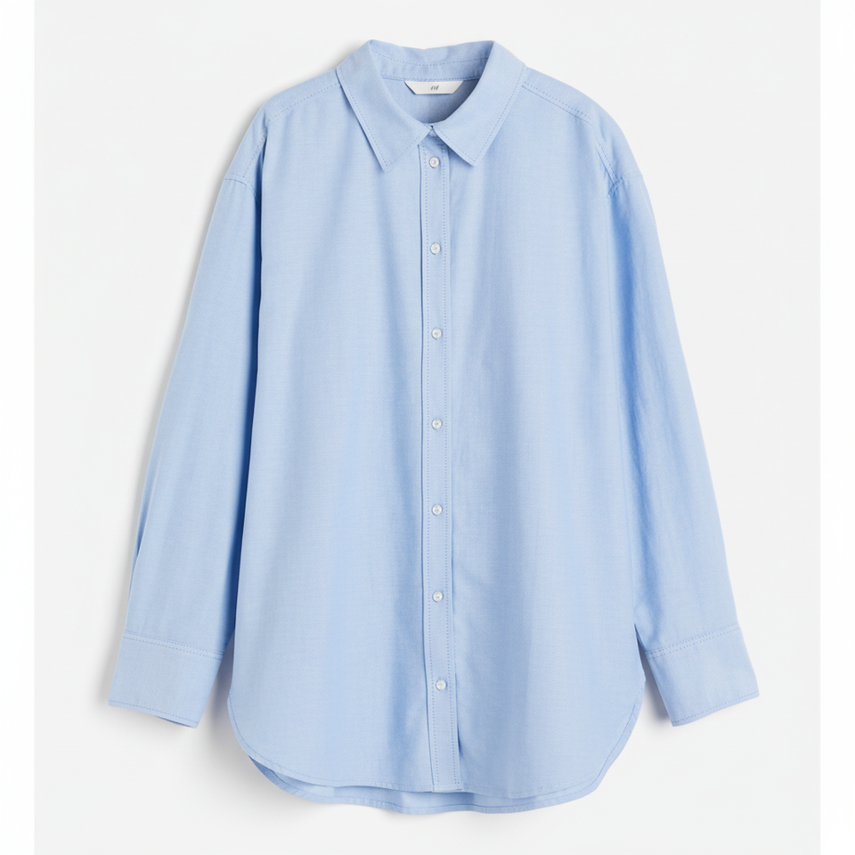 เสื้อเชิ้ตมีกระดุมสีฟ้าคลาสสิกเสื้อและเสื้อเบลาส์ของผู้หญิง
