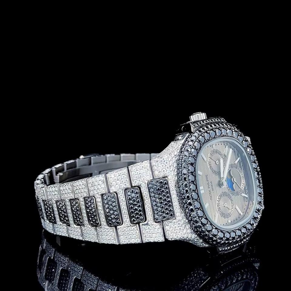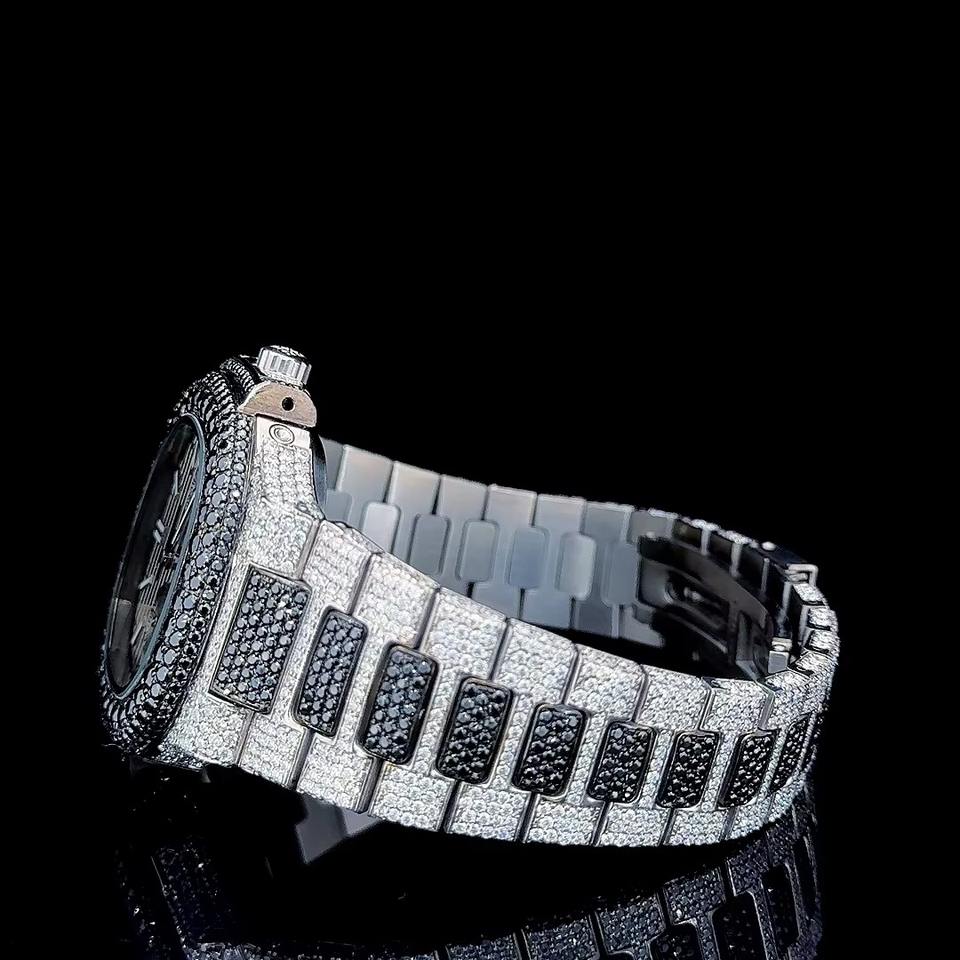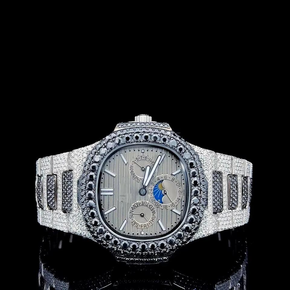 นาฬิกาข้อมือหรูหราดีไซน์ยูนิเซ็กซ์ หน้าปัดกระจก ตัวเรือนสแตนเลสสตีล ประดับด้วยโมอิสซาไนต์คุณภาพสูง พร้อมกลไก ETA ขายส่ง