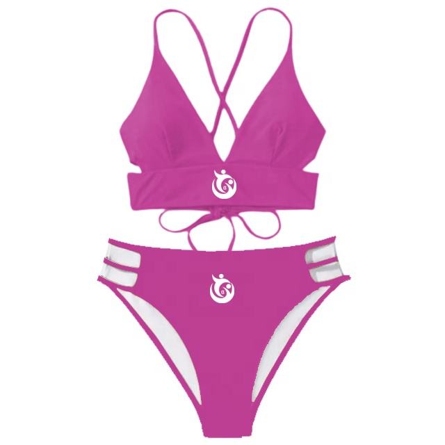ชุดว่ายน้ำบิกินีตัดรูปตัววีสีล้วนของผู้หญิงบิกินี่แฟชั่นพิมพ์ซับลิเมชัน2025