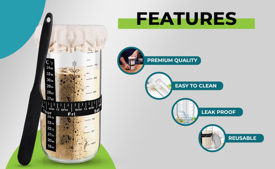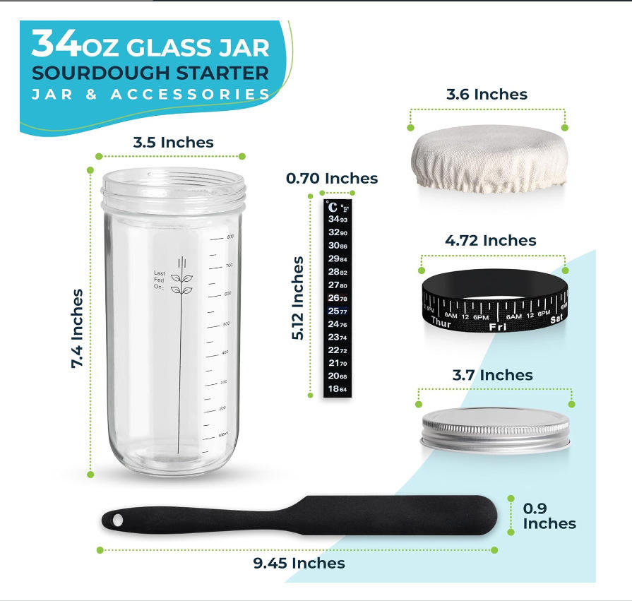 ชุดขวดแก้วสำหรับทำแป้งซาวโดว์ขนาด 24 ออนซ์ รุ่น Syh198 พร้อมแถบวัดอุณหภูมิ ที่ขูดแป้ง และผ้าคลุมเย็บติด